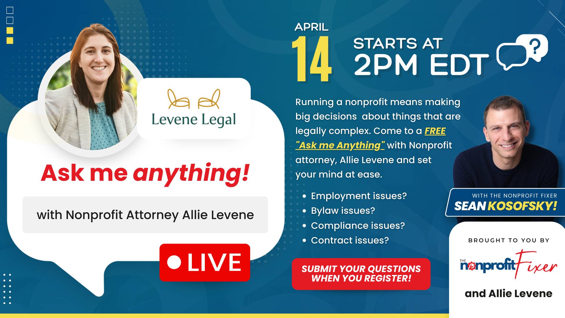SUBMIT YOUR BURNING LEGAL QUESTIONS, THEN GET ANSWERS LIVE ON APRIL 14th, 2026, at 2 PM!